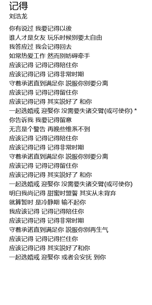 | [01:28.97] | 应该记得 记得记得陪住你 |