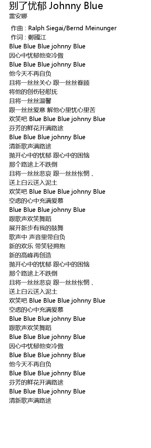 | [00:42.46] | huān xiào ba Blue Blue Blue johnny Blue |