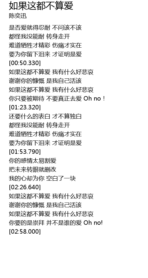 | [00:52.100] | 如果这都不算爱 我有什么好悲哀 |