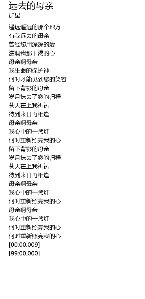 | [03:00.01] | mǔ qīn a mǔ qīn |