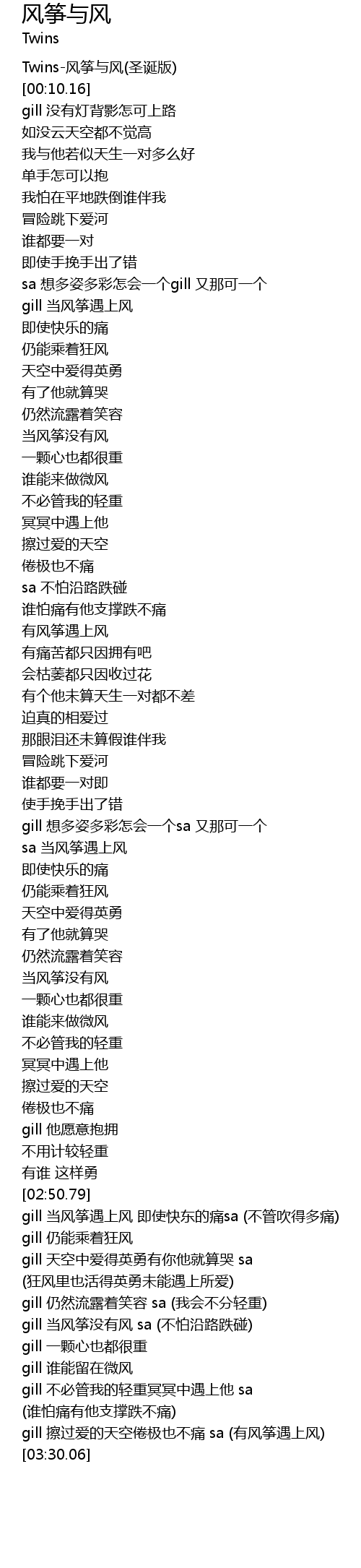 | [00:00.80] | Twins-风筝与风(圣诞版) |