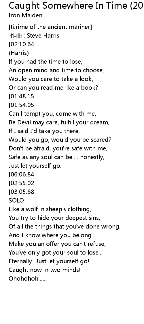 | [02:32.51][02:55.02][06:07.47][06:29.53] | Caught somewhere in time |