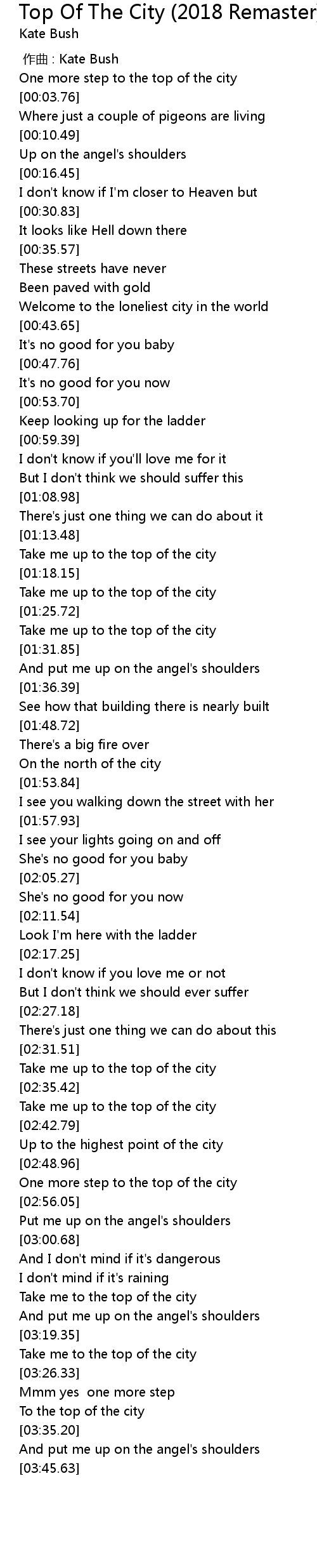 | [00:00.000] | zuò qǔ : Kate Bush |