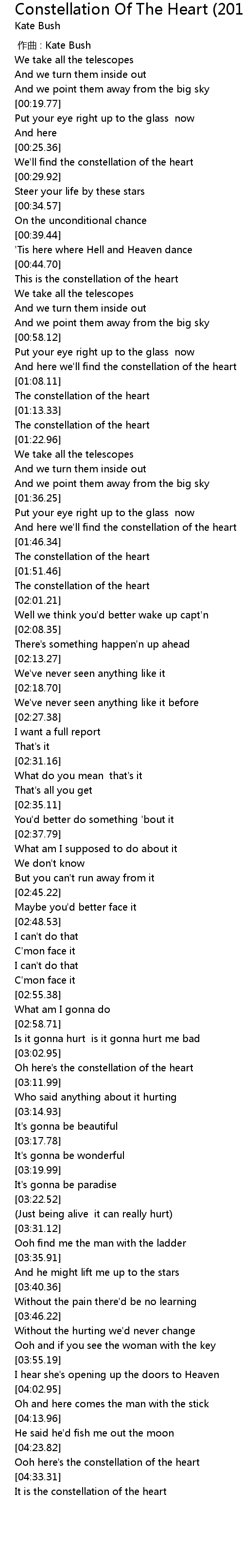 | [03:07.92] | Oh here' s the constellation of the heart |