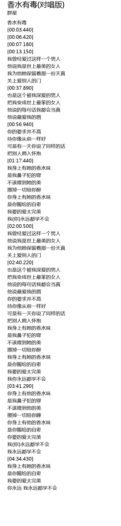 | [03:24.990] | wǒ shēn shàng yǒu tā de xiāng shuǐ wèi |