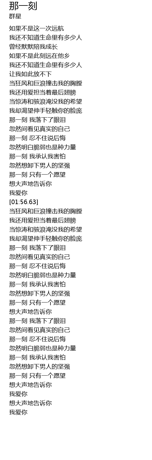 | [01:15.08] | 那一刻 我落下了眼泪 |