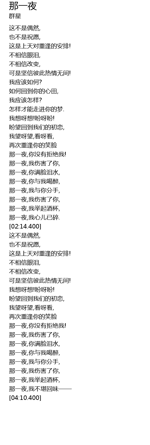 | [01:40.600] | 那一夜,你没有拒绝我! |