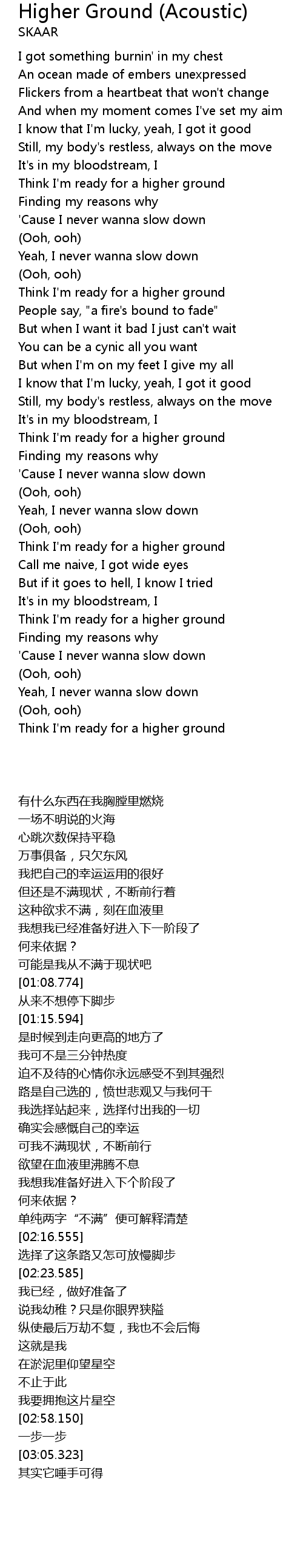 Think I'm ready for a higher ground |