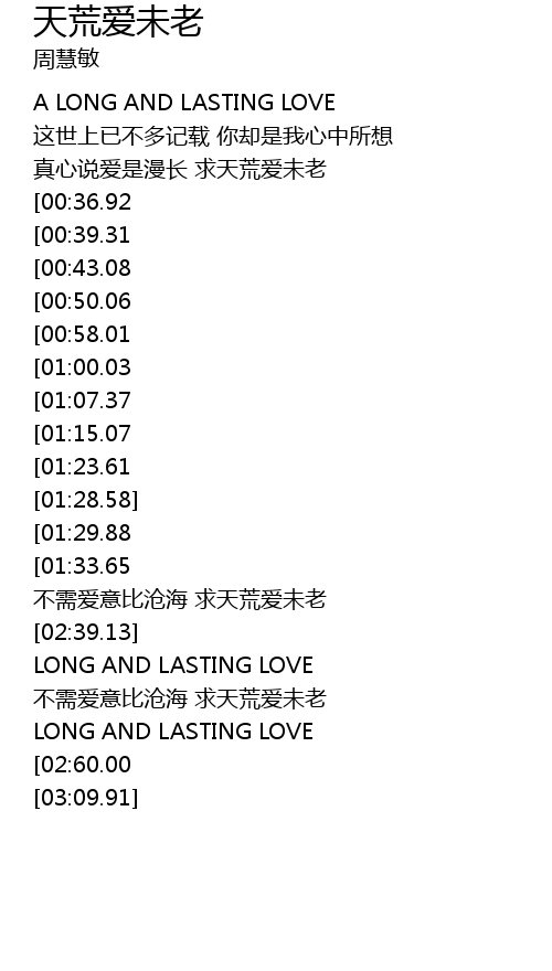 | [01:50.55][00:39.31] | A LONG AND LASTING LOVE |