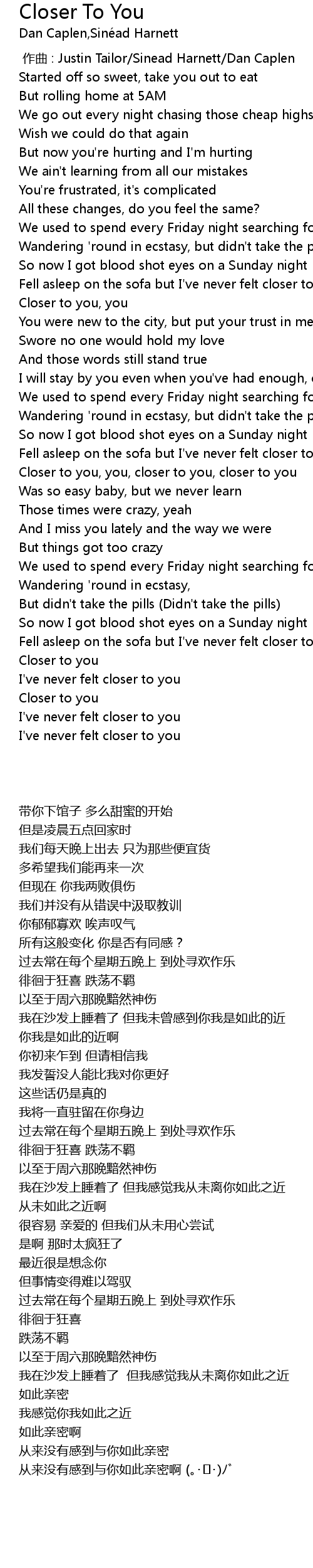 | [01:56.66] | Closer to you, you, closer to you, closer to you |