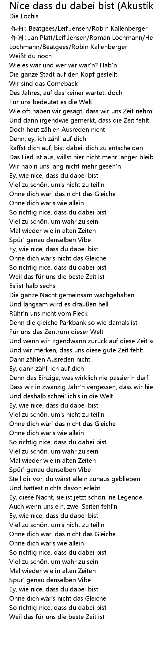| [02:47.718] | Ey, wie nice, dass du dabei bist |