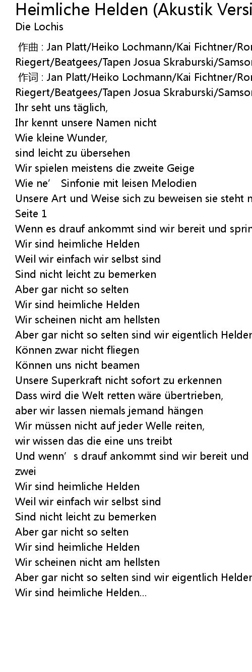 | [00:56.897] | Aber gar nicht so selten sind wir eigentlich Helden |