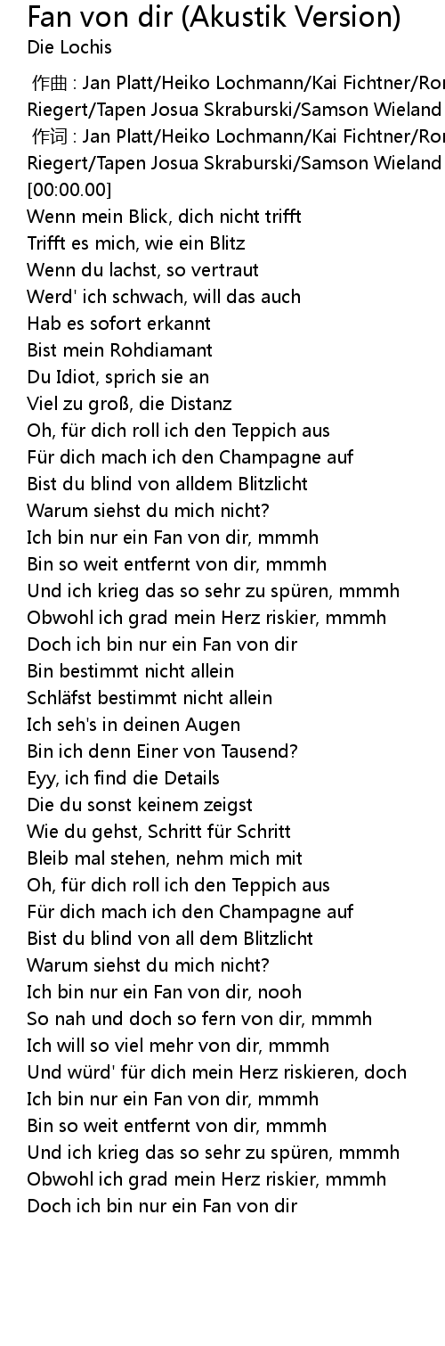 | [01:14.840] | Doch ich bin nur ein Fan von dir |
