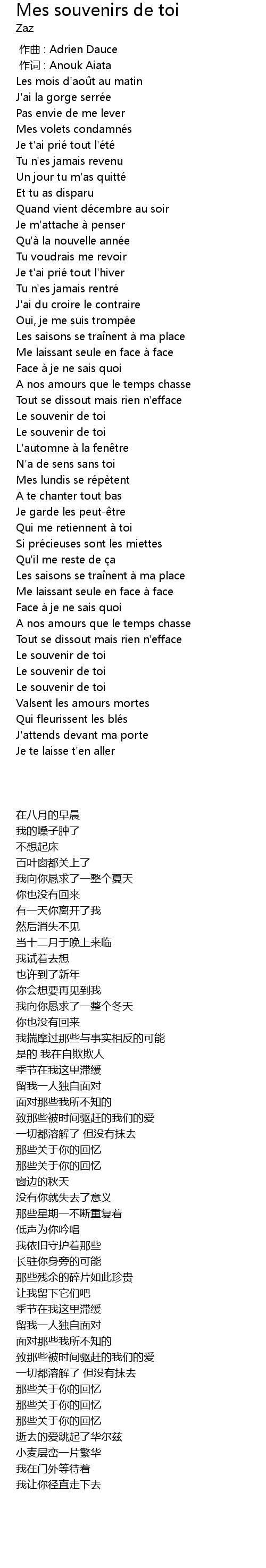 | [00:17.119] | Je t' ai prie tout l'e te |
