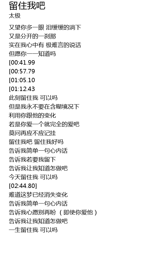 [03:16.81][00:41.99] 留住我吧 留住我好吗