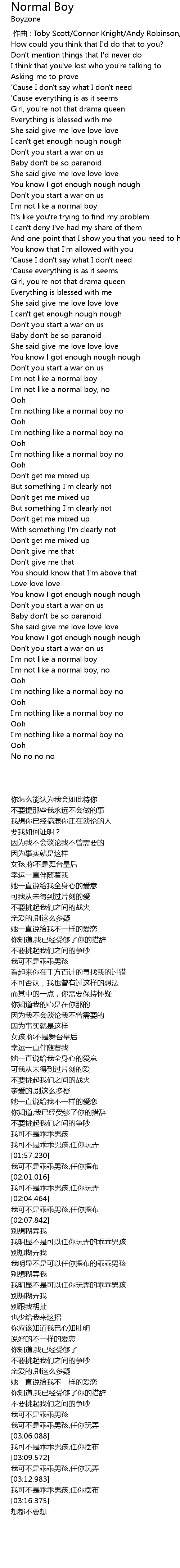 | [03:03.292] | I' m not like a normal boy, no |
