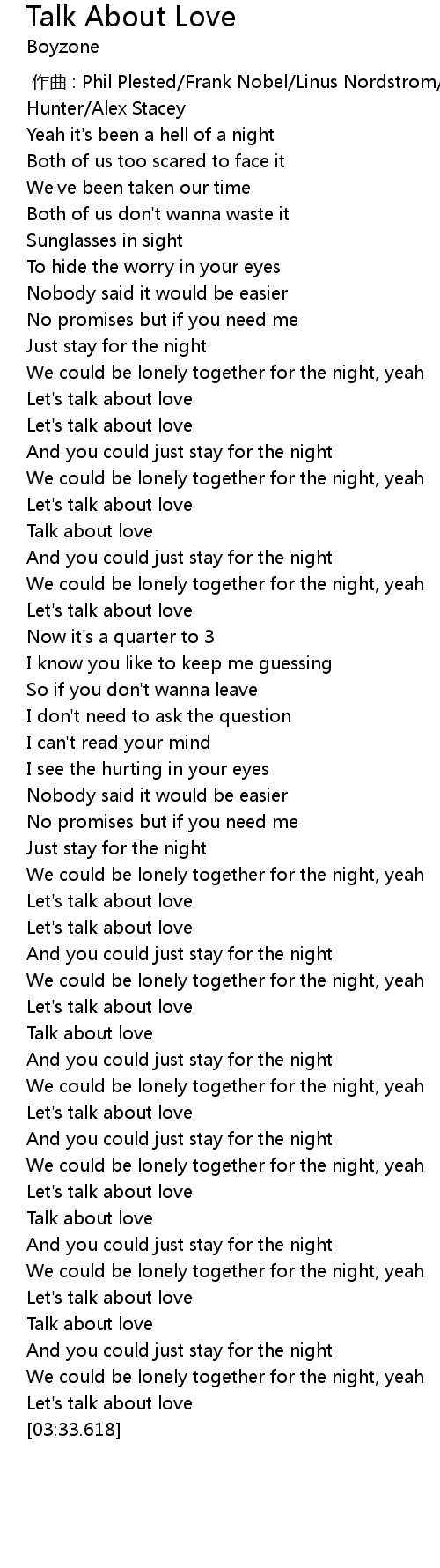 | [03:25.820] | We could be lonely together for the night, yeah |