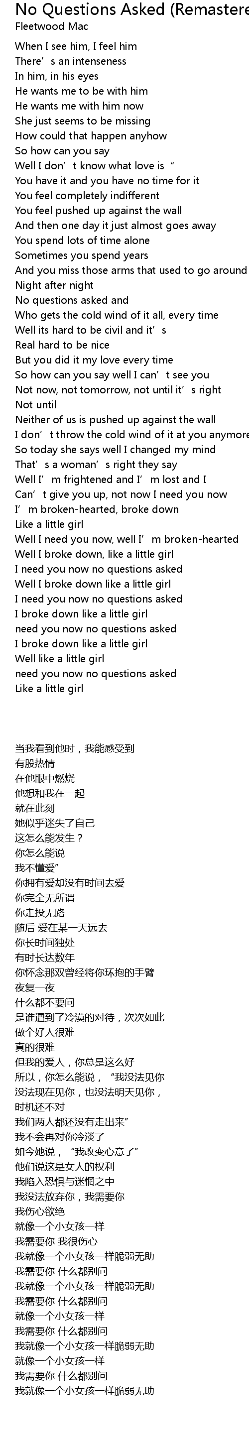 | [03:29.770] | Well I need you now, well I' m brokenhearted |