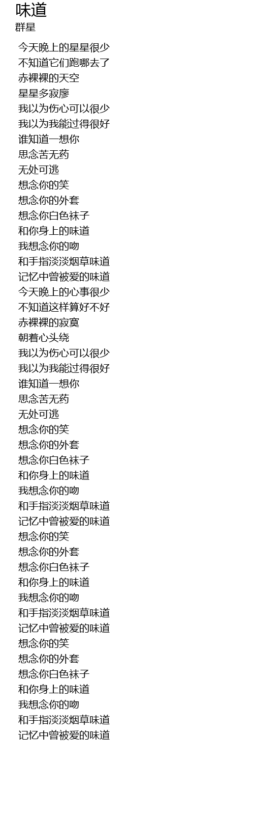 味道 wei dao Lyrics