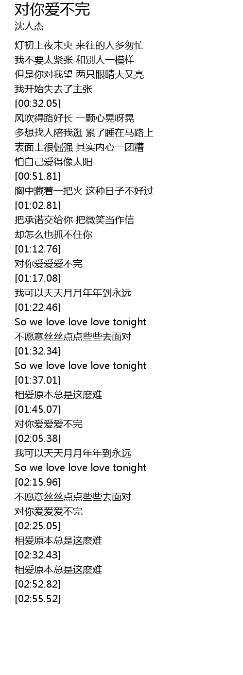 | [02:01.89] | dui ni ai ai ai bu wan |