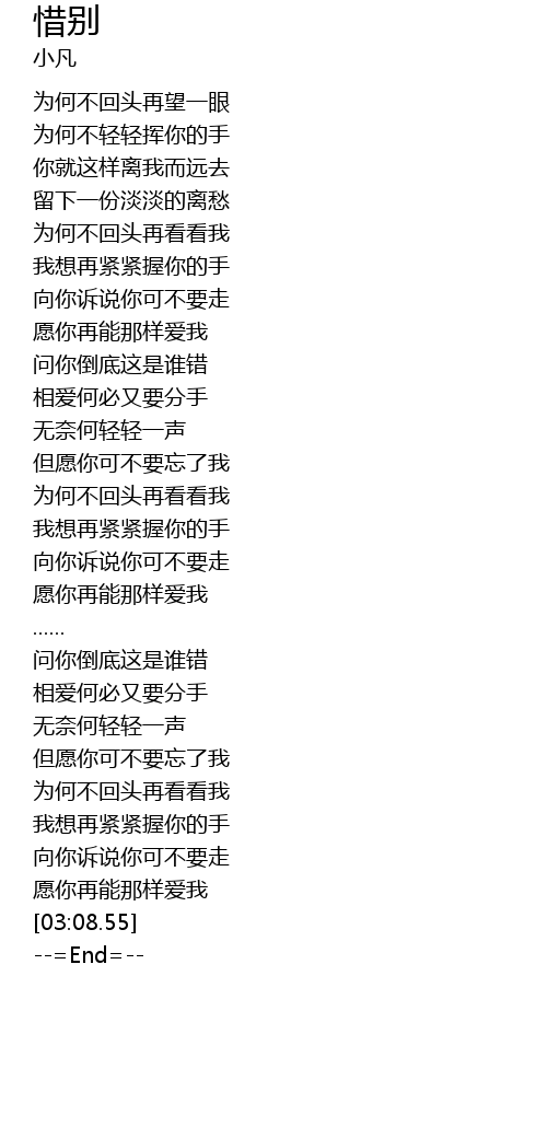 | [00:15.41] | 为何不轻轻挥你的手 |