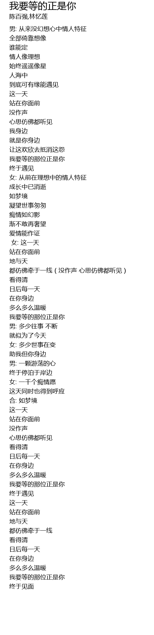 | [00:21.73] | 男: 从来没幻想心中情人特征 |