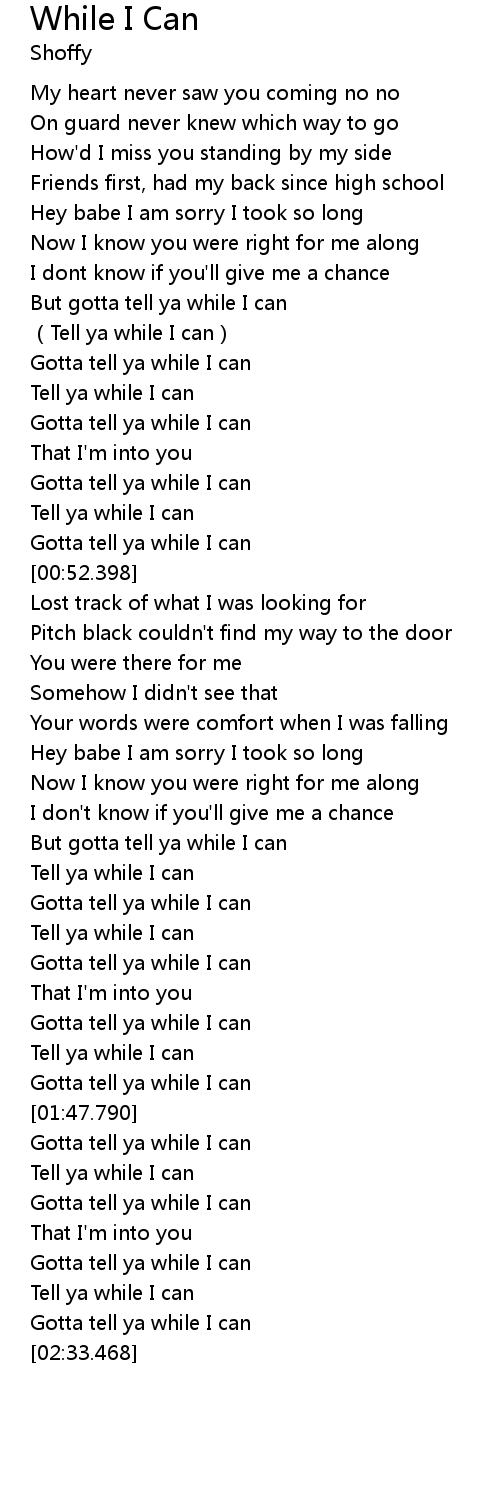 | [00:18.043] | Hey babe I am sorry I took so long |