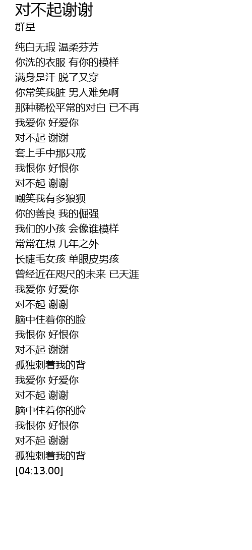 | [03:43.96] | duì bù qǐ xiè xiè |