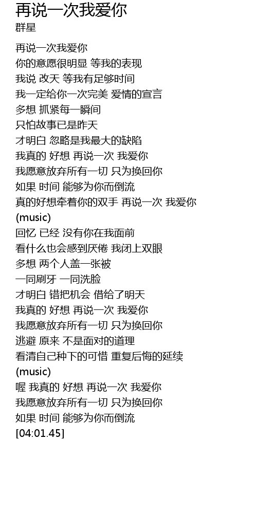 | [01:20.45] | 我真的 好想 再说一次 我爱你 |