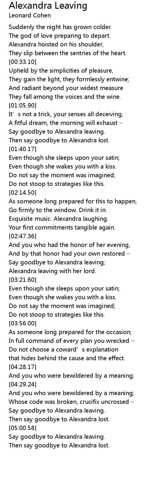| [04:54.63] | Then say goodbye to Alexandra lost. |