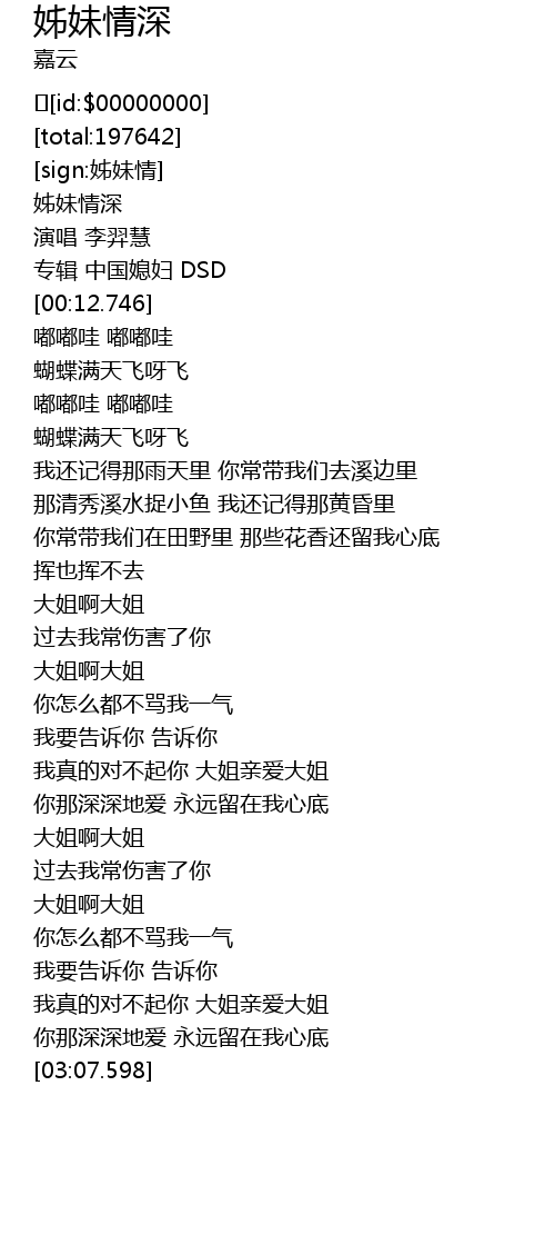 | [01:52.236] | 我真的对不起你 大姐亲爱大姐 |