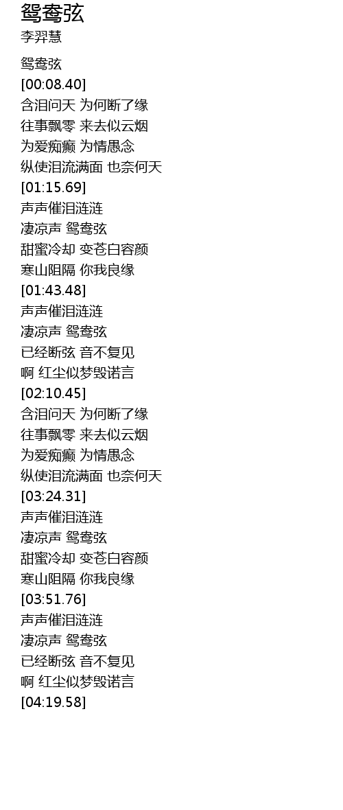 | [03:58.31] | 凄凉声 鸳鸯弦 |