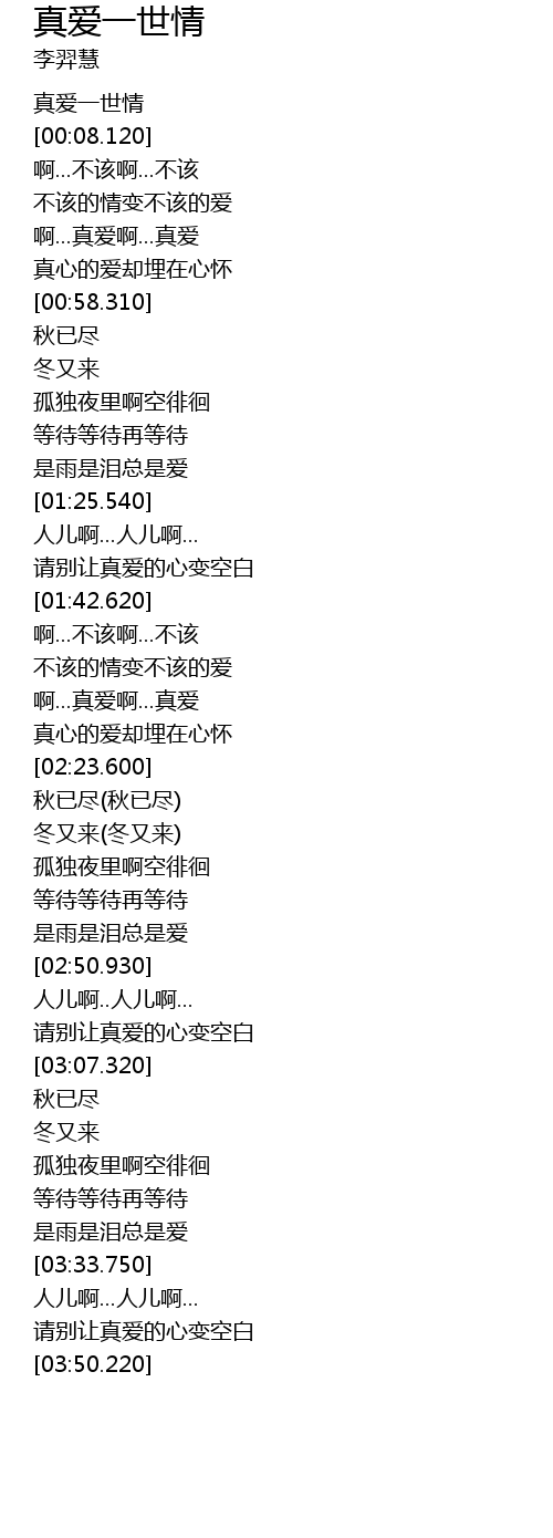 | [00:02.120] | 真爱一世情 |