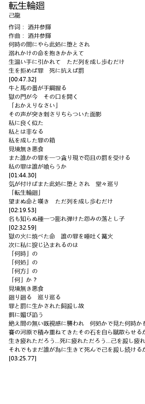 | [00:39.70] | 生を拒めば罪 死に抗えば罰 |