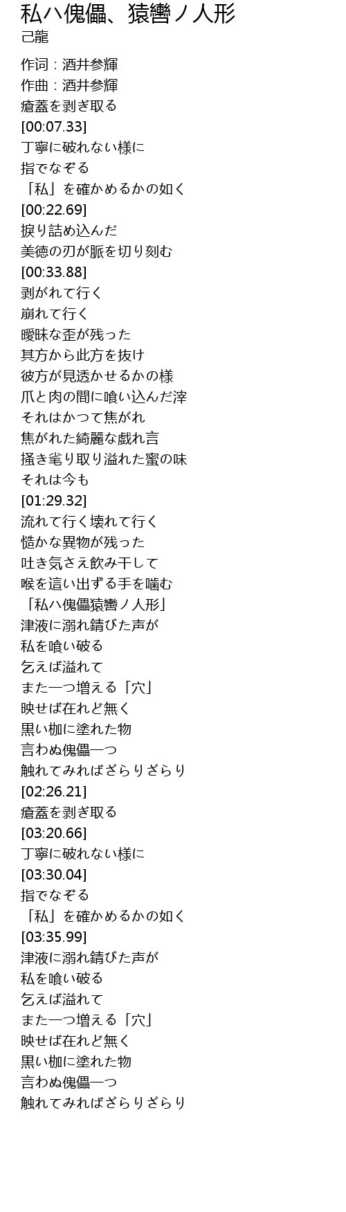 | [01:47.17] | 「私ハ傀儡猿轡ノ人形」 |