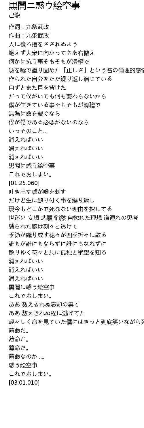 | [02:07.570] | 黒闇に惑う絵空事 |