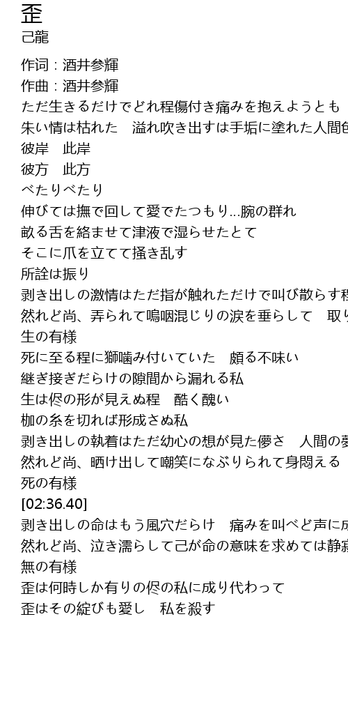 | [03:45.29] | 歪はその綻びも愛し 私を殺す |