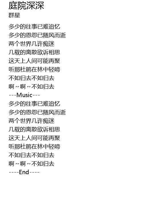 庭院深深 ting yuan shen shen Lyrics
