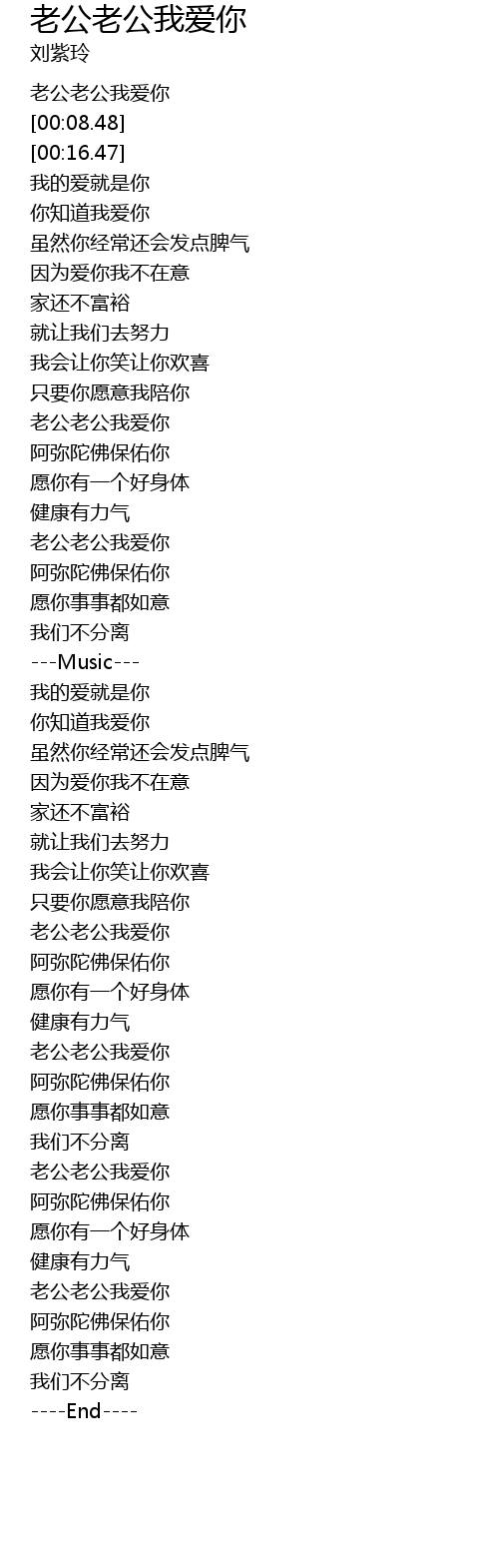 | [00:04.59] | lao gong lao gong wo ai ni |
