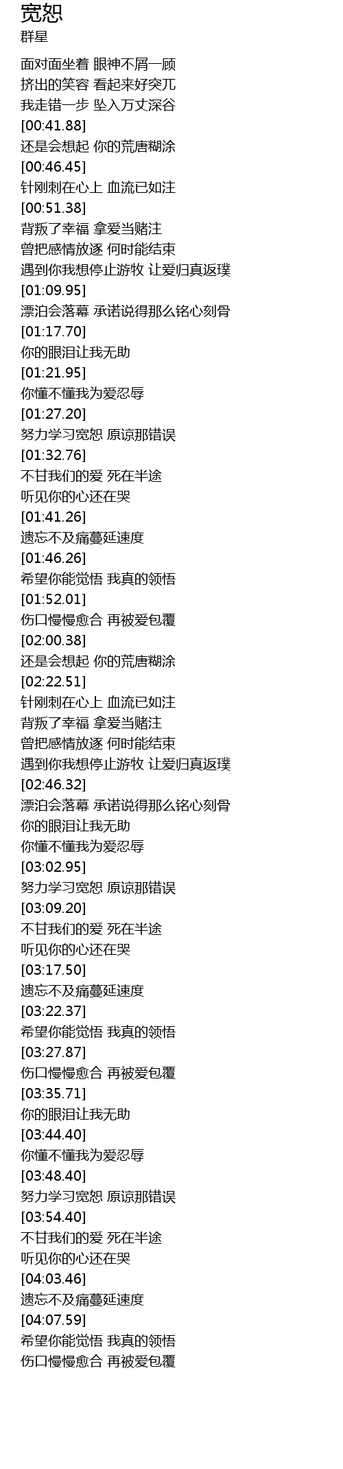 | [03:04.59] | 努力学习宽恕 原谅那错误 |
