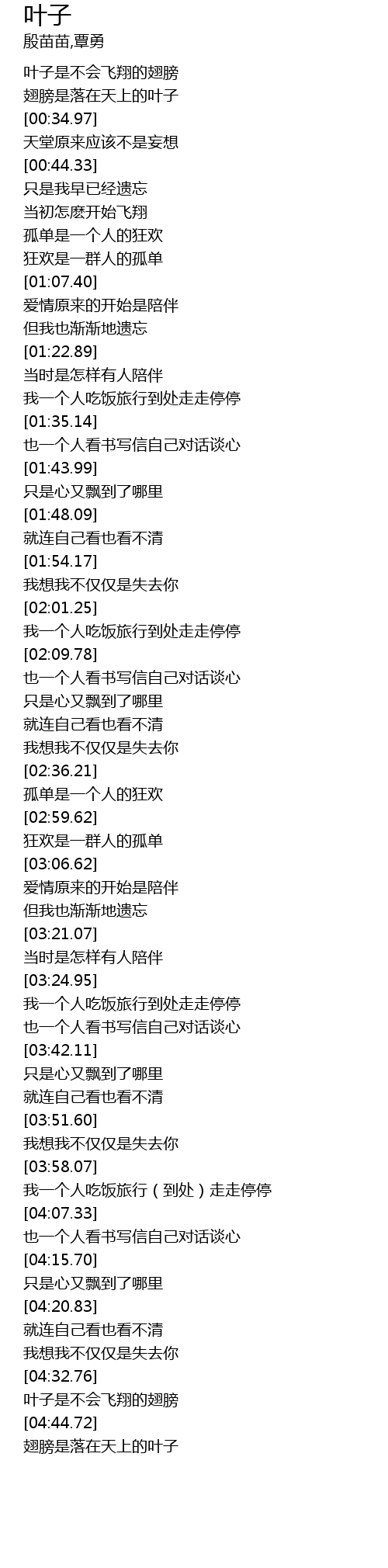 | [04:46.17] | 翅膀是落在天上的叶子 |