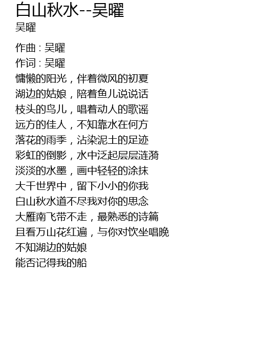 | bái shān qiū shuǐ dào bù jìn wǒ duì nǐ de sī niàn | |