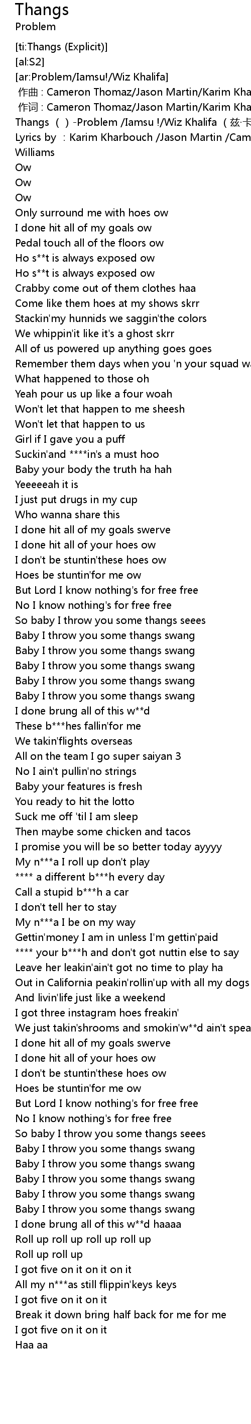 | [00:00.00] | Thangs Problem Iamsu ! Wiz Khalifa zī kǎ lì fǎ |