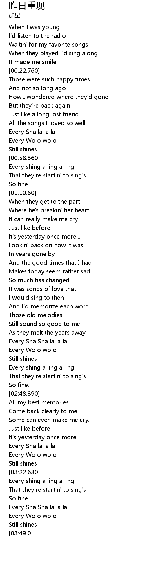| [03:13.0] | Every Sha la la la |