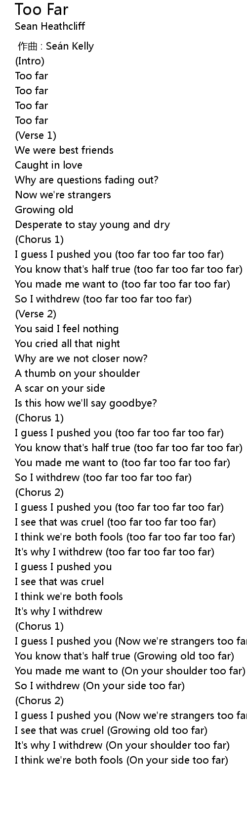 | [00:58.24] | I guess I pushed you too far too far too far |
