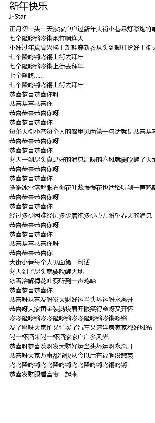 | Song | 新年快乐 |