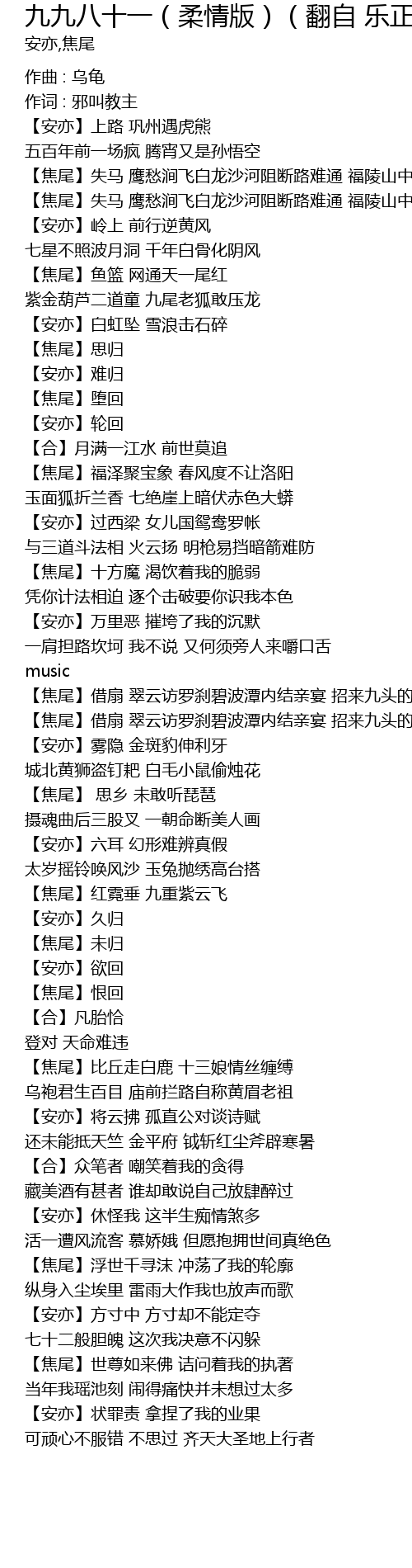 | 作曲 : 乌龟 | |