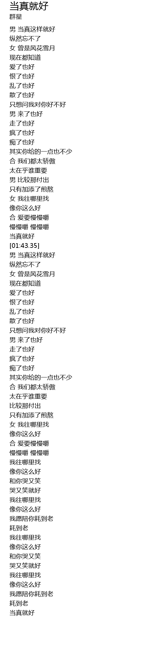 | [01:39.91] | dàng zhēn jiù hǎo |