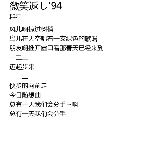 | [00:31.00] | zǒng yǒu yì tiān wǒ men huì fēn shǒu |