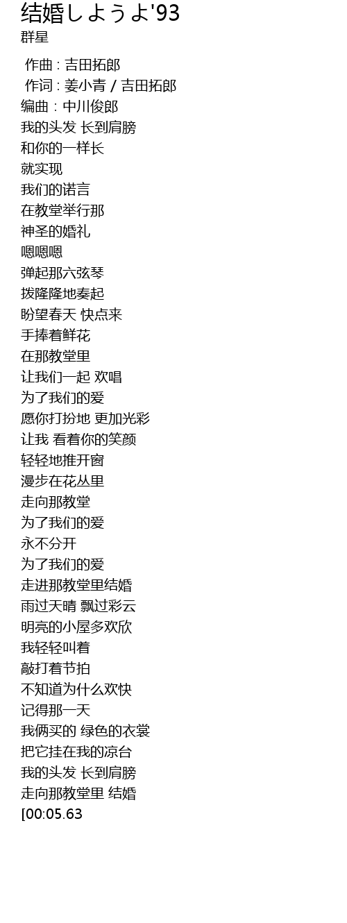 | [00:01.000] | 作词 : 姜小青 / 吉田拓郎 |